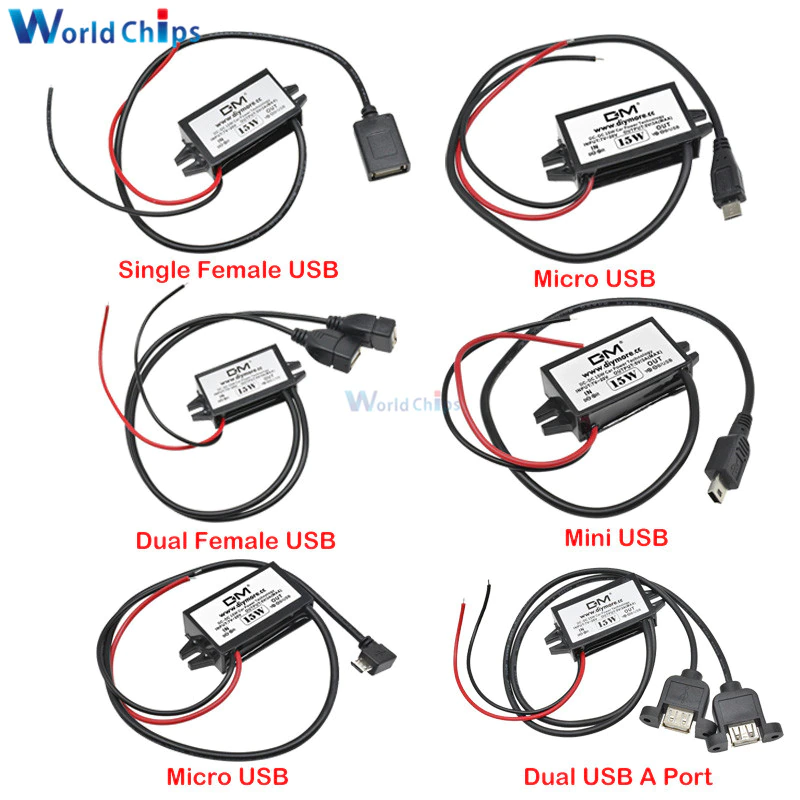 Понижающий преобразователь 12 В до 5 В, 3 А, 15 Вт, DC-DC, модуль питания для автомобиля, мужской, женский, USB-адаптер, Mini USB, адаптер Micro USB