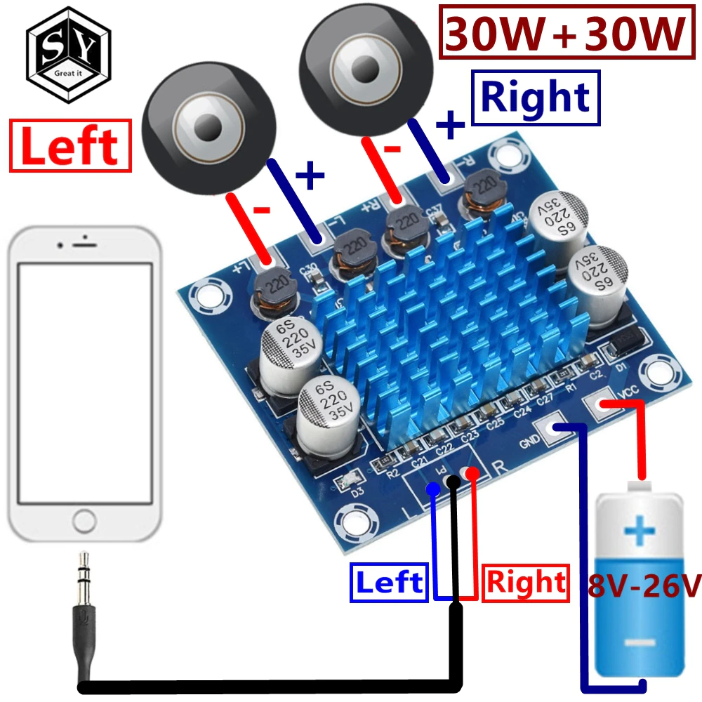 Цифровой стерео аудио усилитель мощности TPA3110 XH-A232 30 Вт + 30 Вт 2,0 DC 8-26 в 3A для Arduino